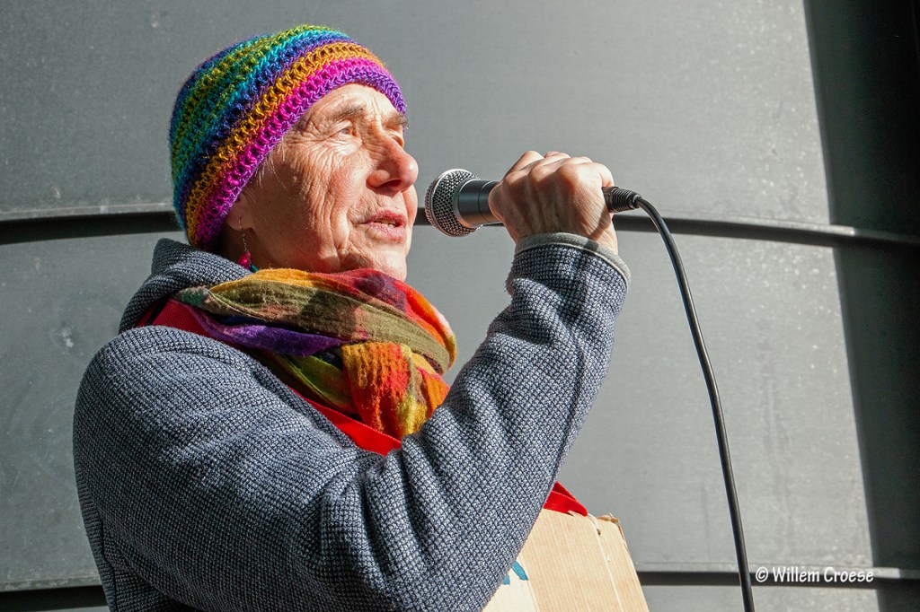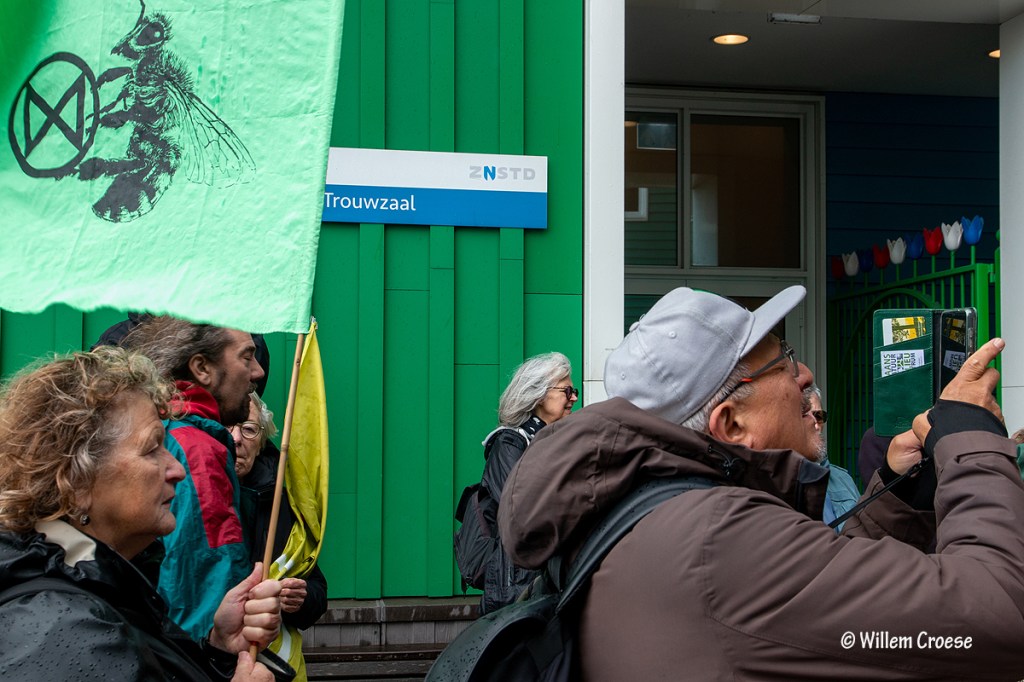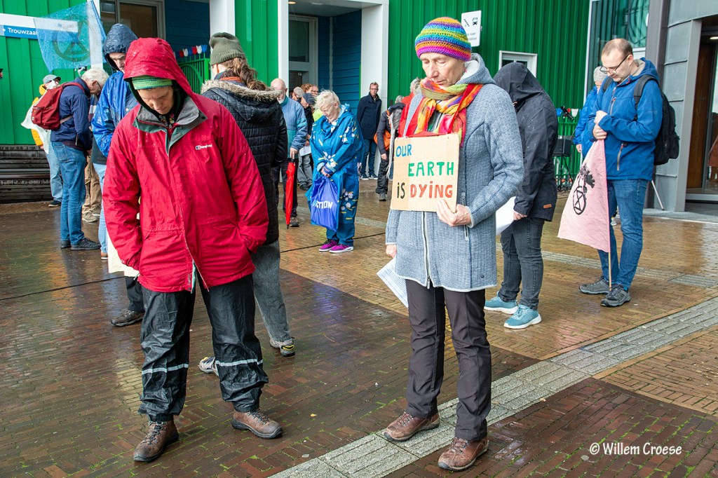 Iedere eerste maandag van de maand wanneer om 12:00 uur het alarm afgaat is XR Zaanstreek-Waterland aanwezig op het plein voor het stadhuis in Zaandam. Vandaag waren ook zangeres Leoni Jansen, wethouder Wessel Breunesse en Lokaal FNV Zaanstreek-Waterland aanwezig. Zij zongen het lied ‘People have the Power’ van Patti Smith. In verband met de regen lagen deze keer de activisten niet op de grond, maar stonden stil met gebogen hoofden.