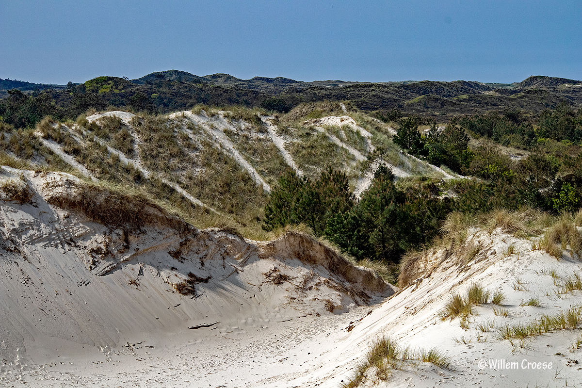 Groet en Schoorl – Op de fiets en te voet door de Schoorlse duinen met Gedeputeerde Statenleden Rosan Kocken (Groen-Links) en Jelle Beemsterboer (BBB) plus medewerkers van de provincie Noord-Holland. Bestuurders van de Duinstichting toonden wat de gevolgen zijn van enorm veel naaldbomen kappen en het verstuiven van de duinen.