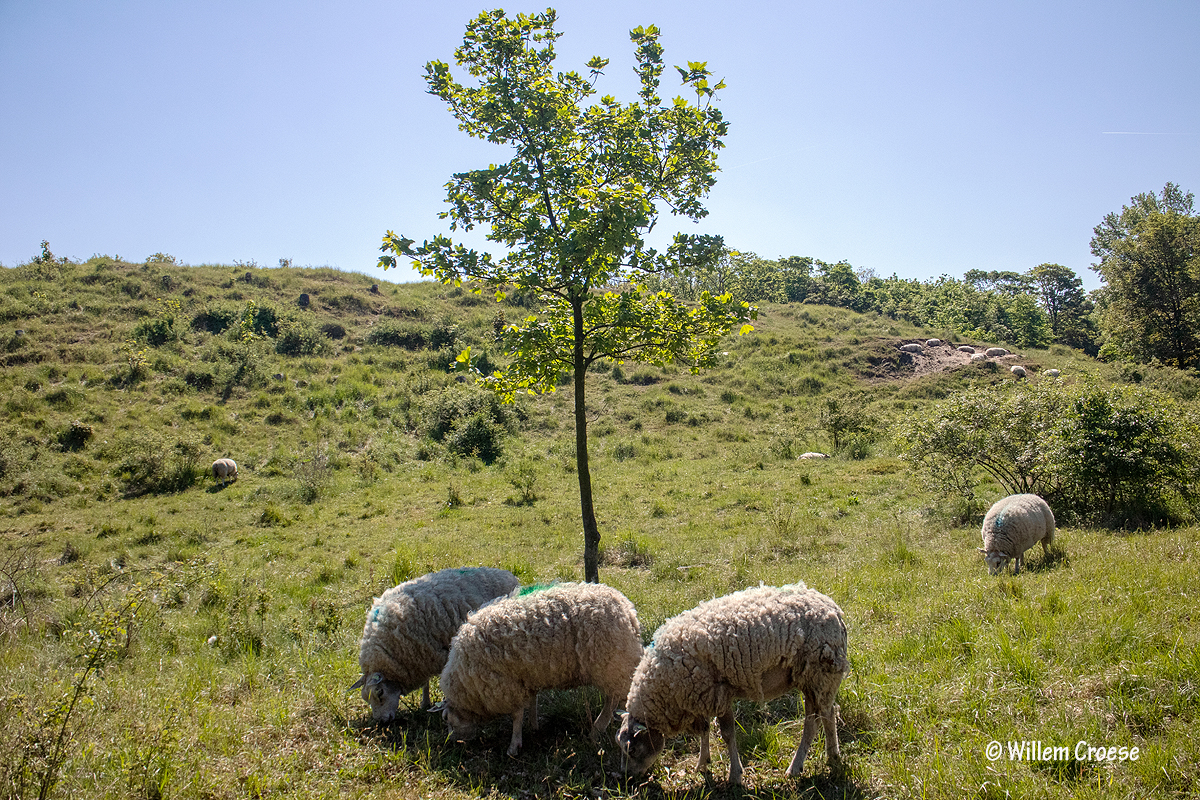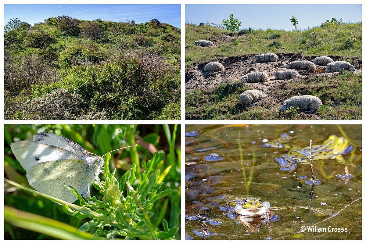 Wijk aan Zee – Heemskerk: Voor de tijd van het jaar flink warm met ruim 26 graden. Soms een strakblauwe lucht. Zandhagedissen doken de bosjes in. Groene Kikkers maakten kabaal in het ´Poeltje van Willem´. Vlinders vlogen alle kanten op. Schapen graasden op een kaal stuk duin waar het heet was.