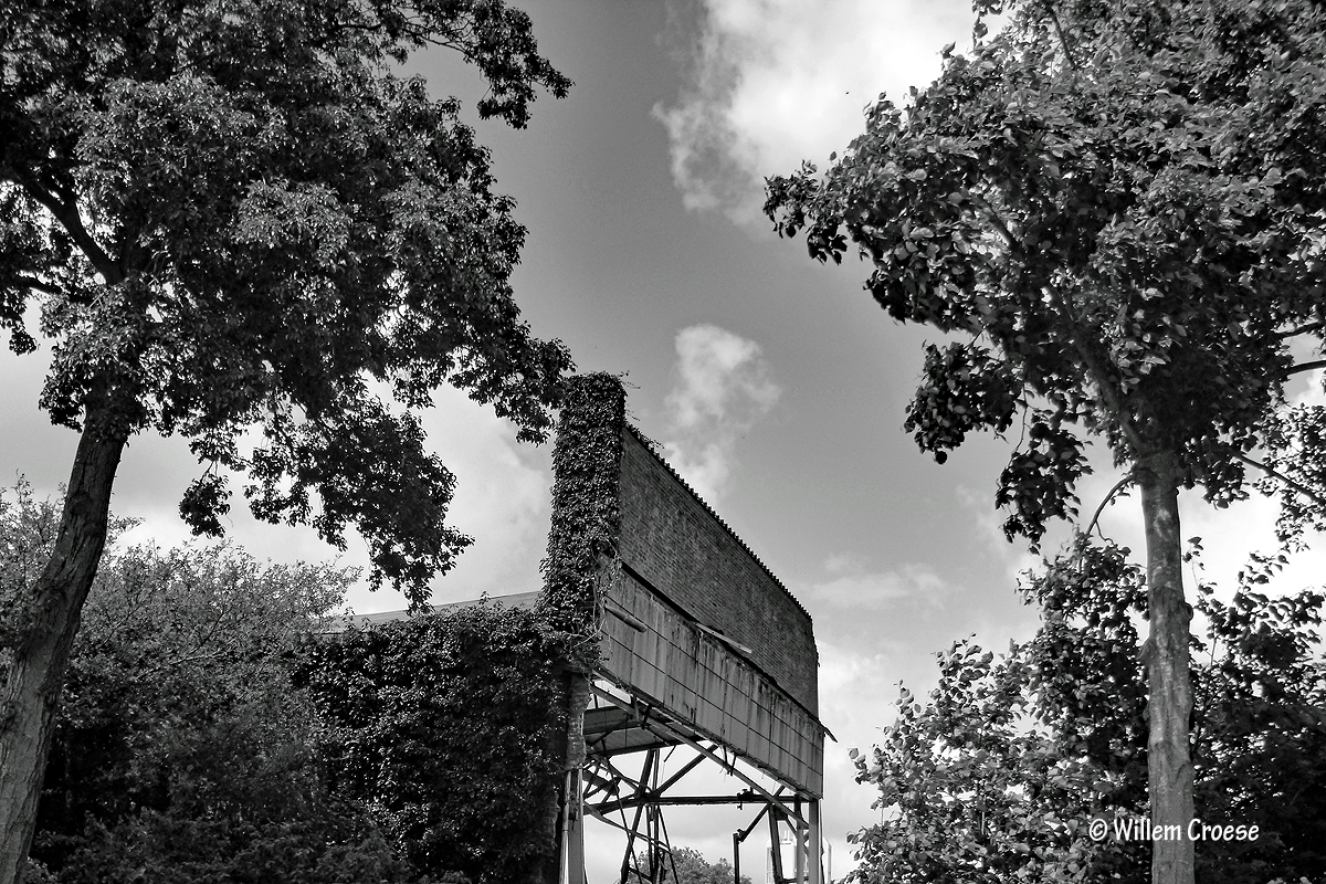 Zaandijk – Dit deel van de voormalige fabriek Pielkenrood Vaten wordt omgeven door struiken, bomen en klimop …