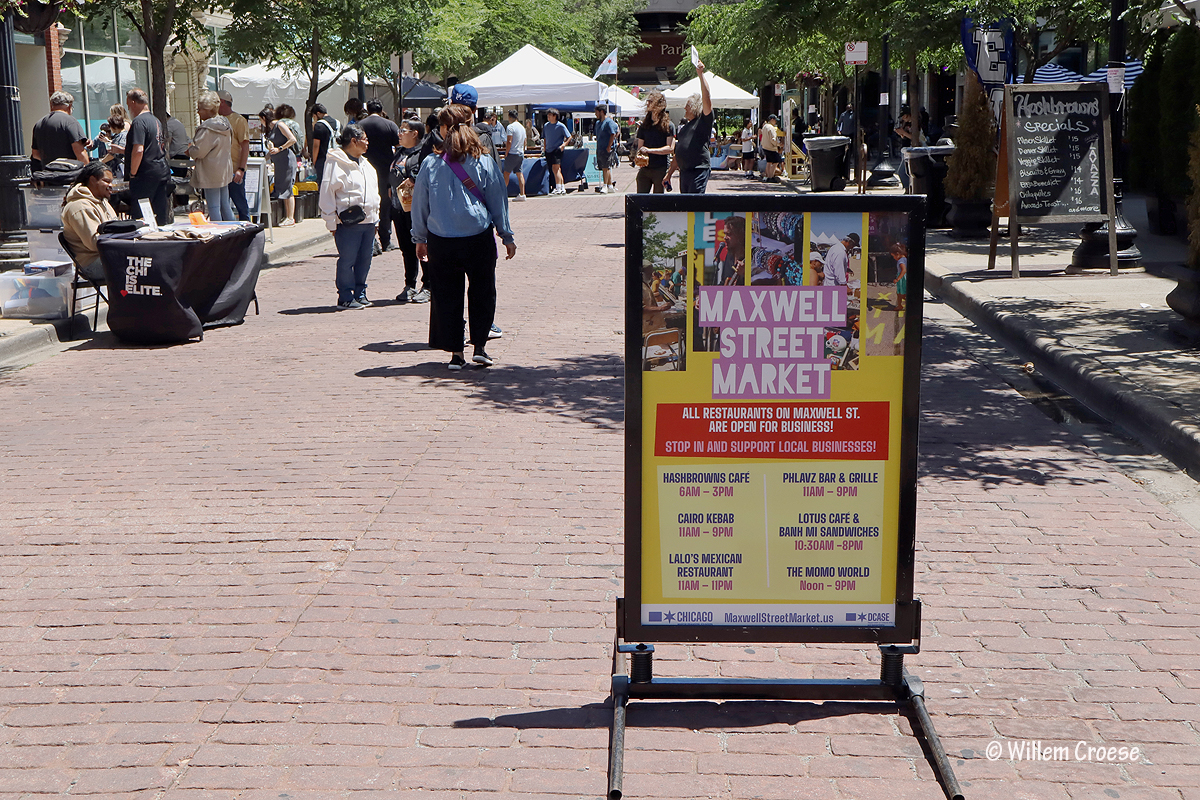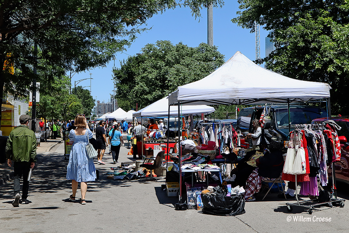 Chicago – Maxwell Street was ooit zoals het Waterlooplein in Amsterdam nog is. Een ‘vlooienmarkt’ met vele varianten van tweedehandsgoederen en in Chicago een grote bron van bluesmuziek. Helaas is er nu nauwelijks nog iets van over. Slechts één keer per maand zijn er dertig verkopers op de wereldberoemde markt te vinden en dat weer alleen in het hoogseizoen. Op 30 juni toch nog daar geweest met vriend en documentairemaker Phil Ranstrom bekend van ‘Cheat You Fair’ over de Chicago blues op deze markt.