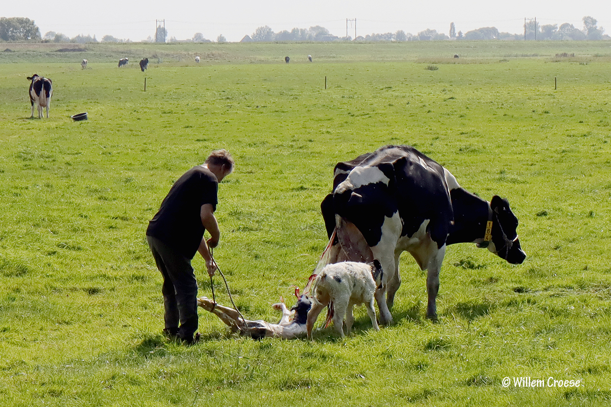 Wijdewormer – Niets vermoedend tijdens een fietstocht via de Zuiderweg zagen wij dat een koe net bevallen was, dus stopten wij om te kijken en niet veel later nog een stel. Intussen werd de boer gewaarschuwd. Hij wist al dat deze koe twee kalfjes heeft, dus bij de geboorte van nummer twee hielp de boer om 13:02 uur een handje. Zo´n mooi gezicht hoe moeder koe hierna haar pasgeboren kroost verzorgt …