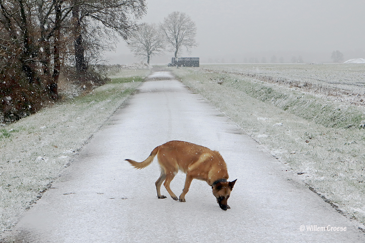 Meppen – Met Benthe vanochtend aan de wandel tijdens eindelijk een sneeuwbuitje. Heerlijk!