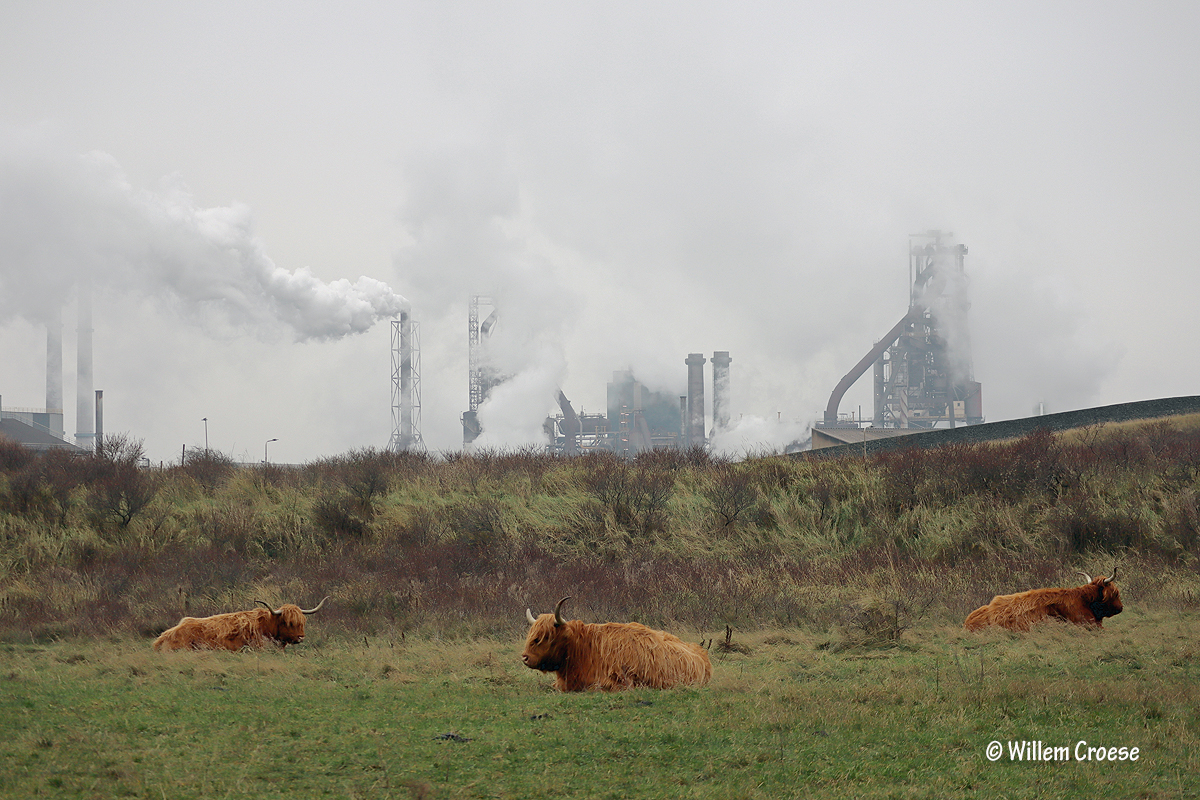 Wijk aan Zee – Waar ooit mensen kampeerden in tenten en caravans staan al heel lang ´stalen´ kunstwerken en hier verblijven vele jaren Hooglanders, dit allemaal onder de rook van de Hoogovens (Tata Steel). Hoe verzint men dit? Bizar!