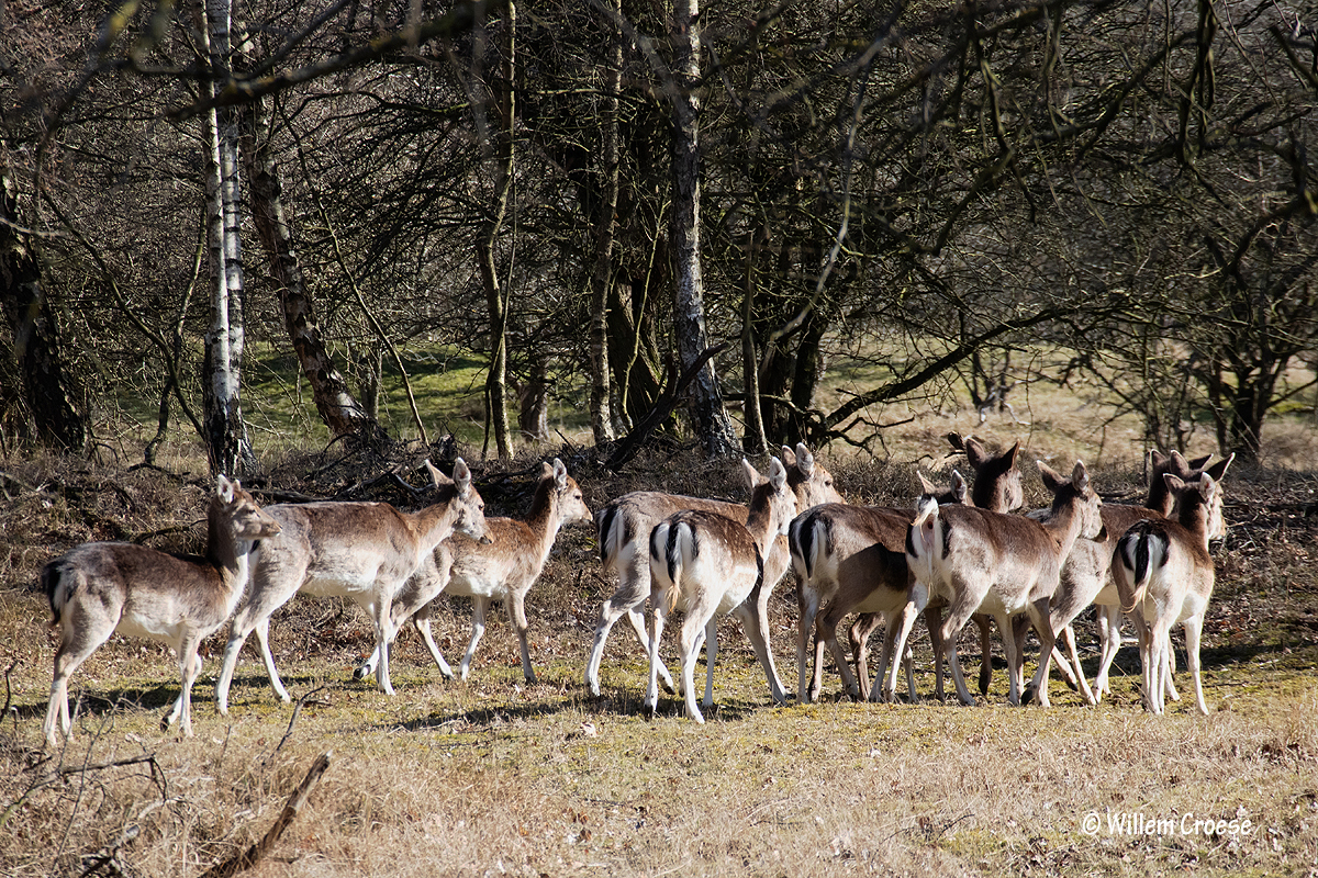 Vogelenzang – AWD – Voorjaar en dan zie je zelden hindes van de Damherten. Het merendeel van de dames is zwanger en dat graag in alle rust. Toch lieten zo´n veertig hindes zich volop zien. Bijzonder dus! En verder wordt het tijd voor een groen voorjaar.