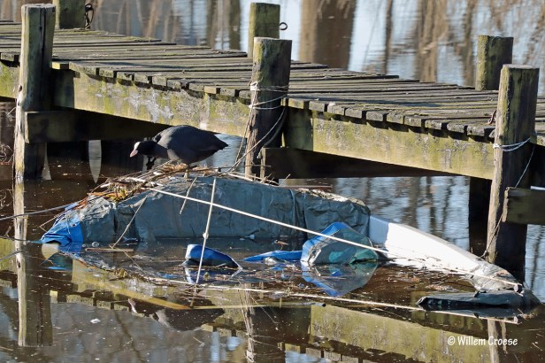 Zaandam – de Watering – Een Meerkoet heeft een ideale plek gevonden voor een nest waar zij de nodige jongen op de wereld laat komen …