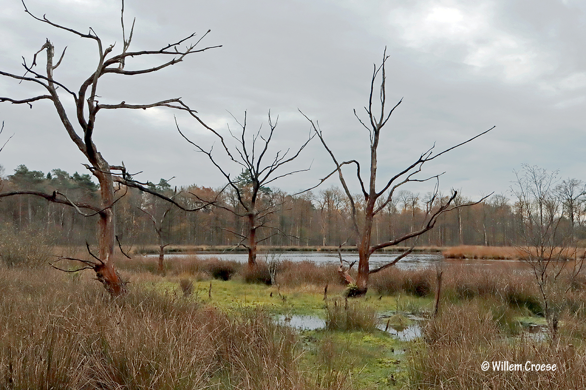 01. Hier zijn de bomen kaal om andere redenen dan herfst. Zij staan namelijk in een zompig stuk land aan een meertje …