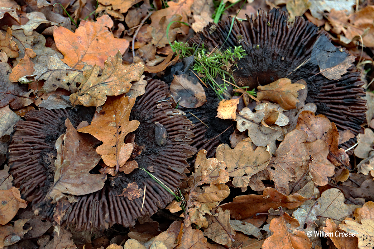 03. Twee zwammen liggen als verloren helden op de grond tussen de blaadjes …