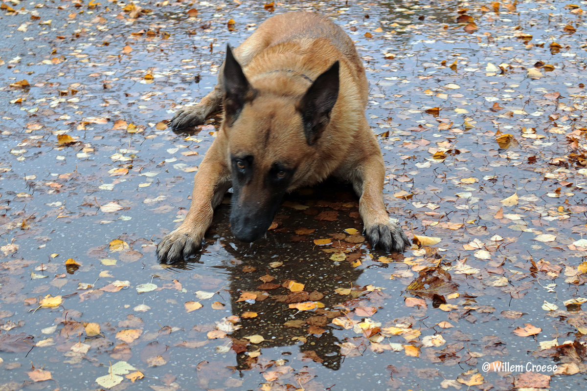 Oostzaan – Eenmaal terug in Het Twiske is het fijn om ballen te gooien. Zoals altijd zoekt mevrouw het liefst water op. Deze keer midden in een plas die helemaal in de herfstsfeer is.