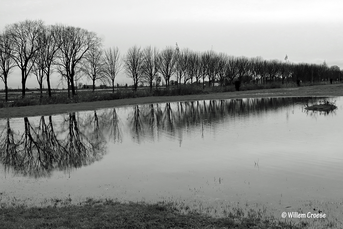 01. Daar waar ooit een boerderij stond is het in de zomer fris groen en nu drijfnat door regenwater dat geen kant op kan …