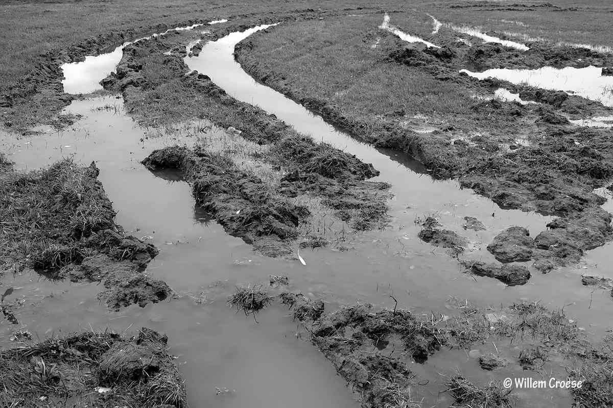 02. Op nog zo’n veld rijden trekkers, bulldozers en dergelijke het land op en af. De sporen zijn zeer duidelijk te zien …