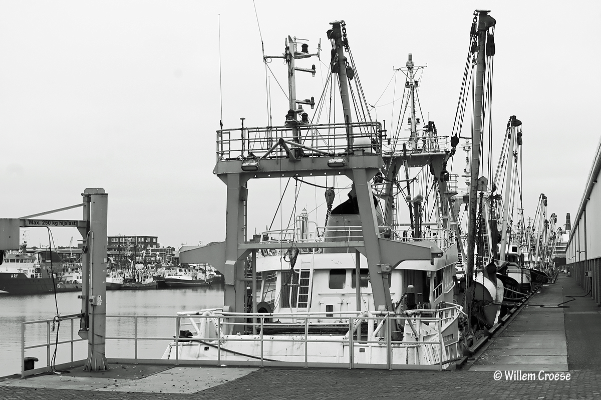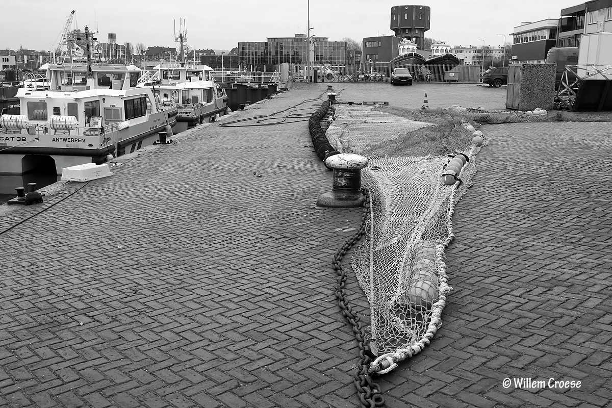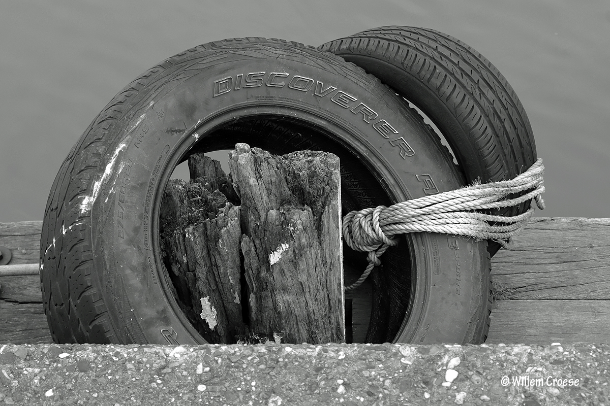 05. Autobanden op een houten paal om schade aan boten te voorkomen …