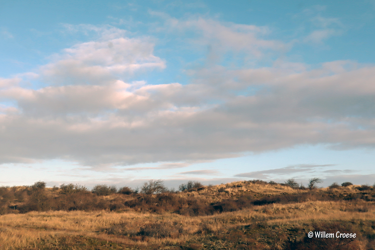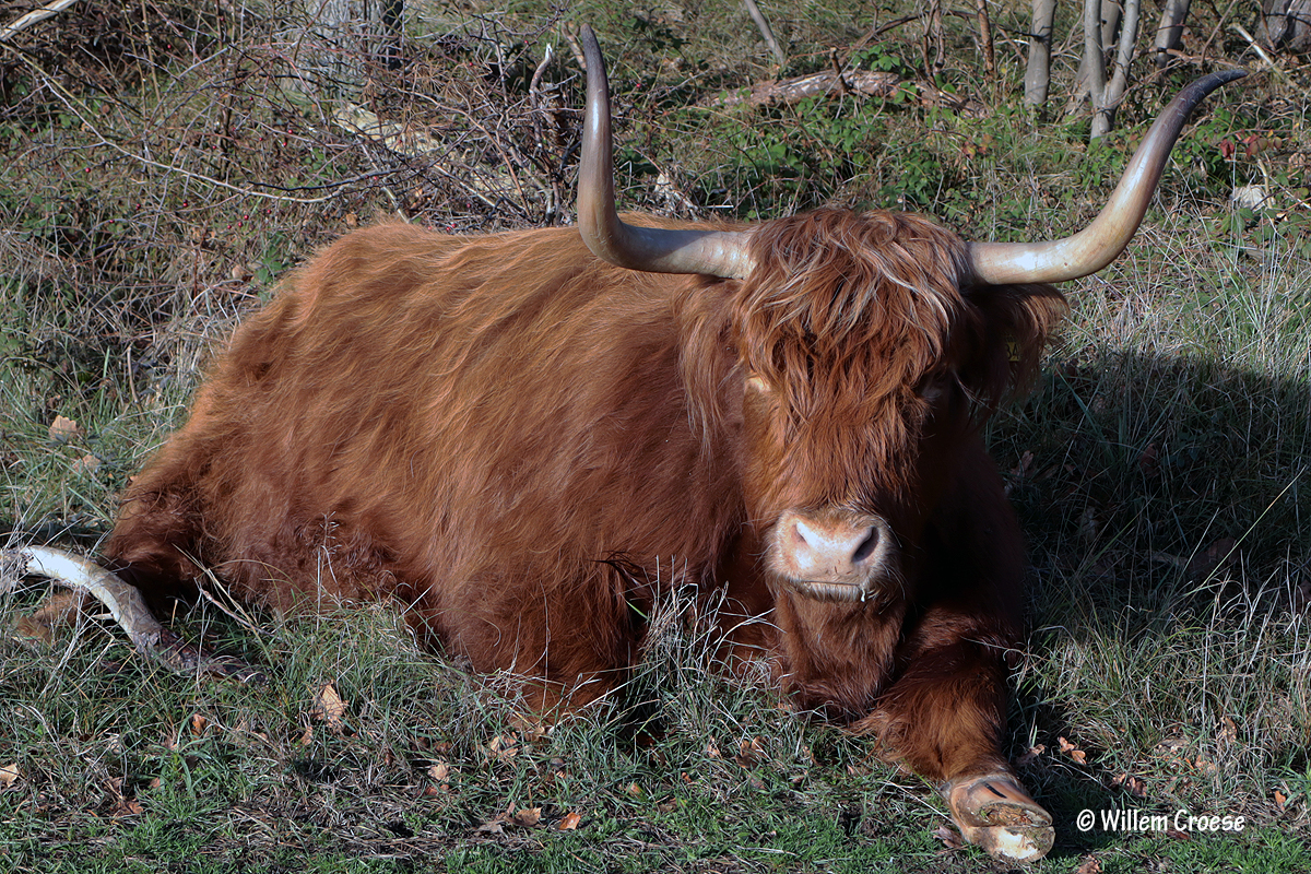 01. Langs de Meeuwenweg liggen en staan zo’n tien Hooglanders te genieten van de zon …