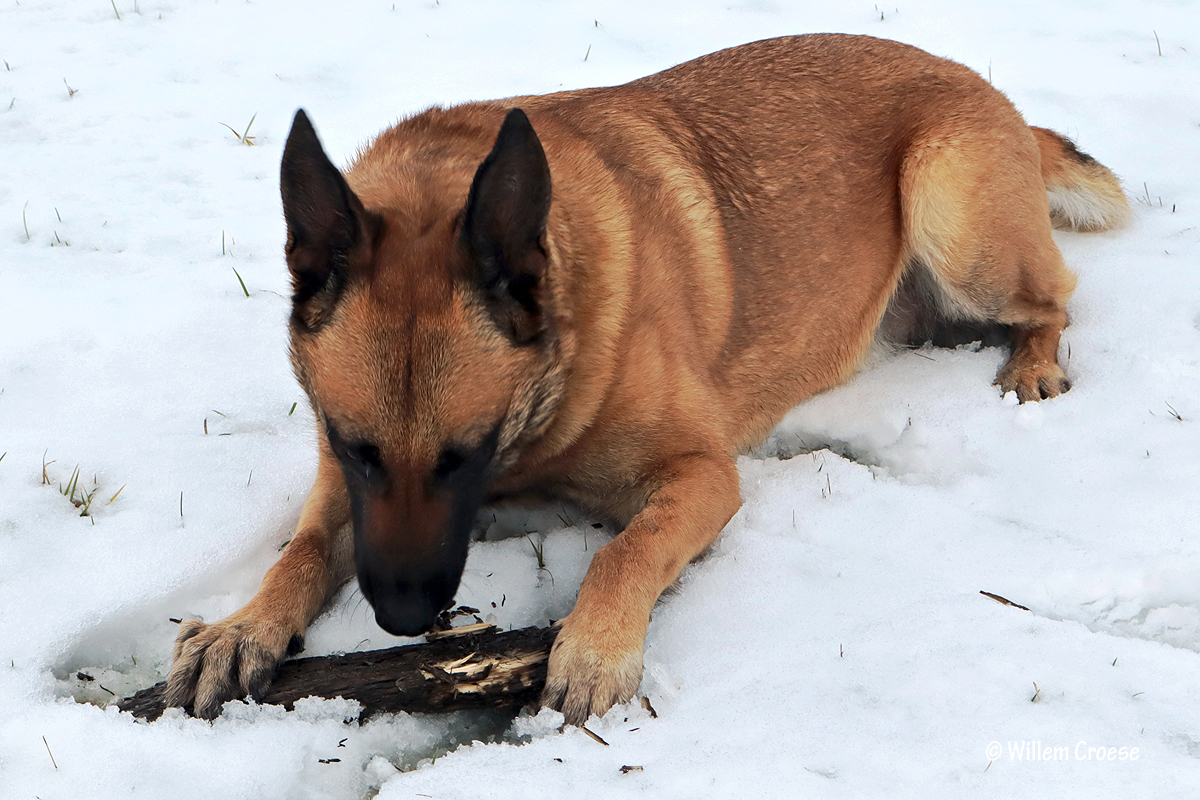 03. Jawel mevrouw had weer een tak gevonden, dus even languit in de sneeuw bestuderen …