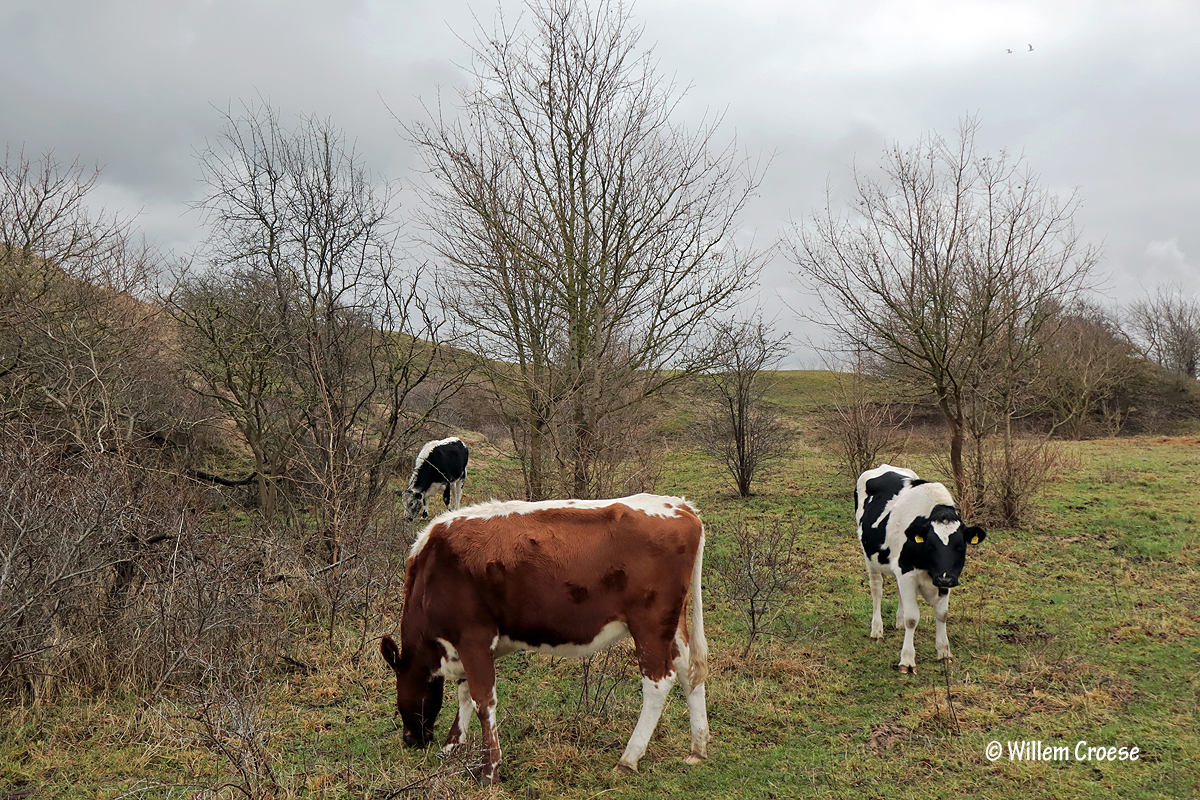 01. Deze duinwandeling startte bij koeien die heerlijk aan het grazen waren zonder in sneeuw te moeten staan …