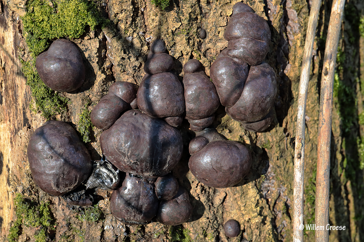 Velsen-Noord – Onderweg even gestopt bij het Wijkeroogpark om met viervoeter Benthe een rondje te doen. En dan zie je dit spektakel aan een boom. De naam van deze zwammetjes is alleen al een kunstwerk namelijk ‘Kogelhoutskoolzwam’.