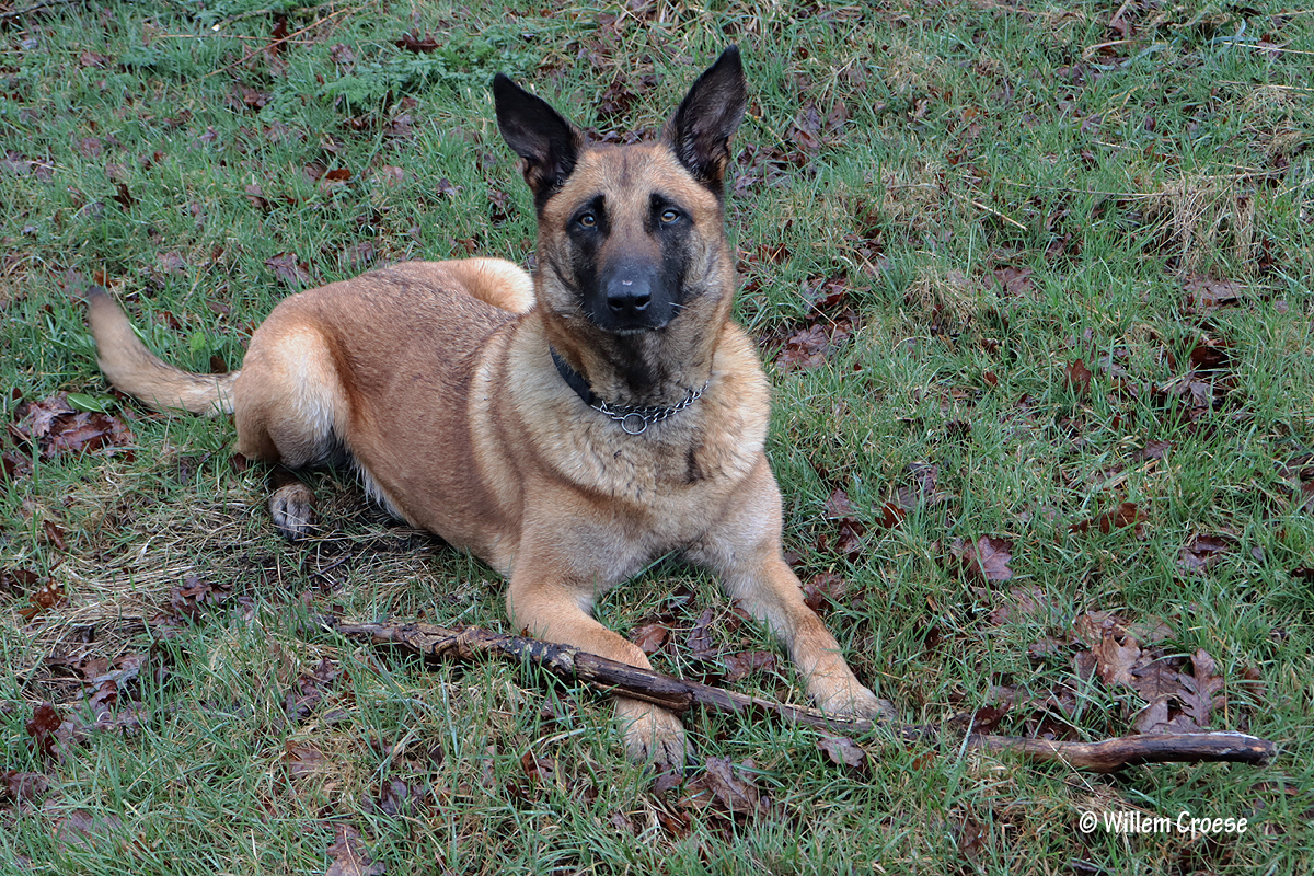 05. Eindelijk even een veldje waar deze dame los mocht. Zij was weer op jacht naar takken …