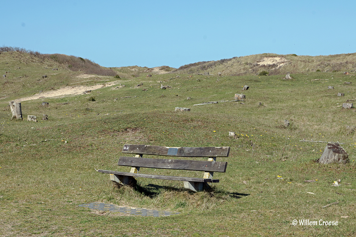 08. Oeps dit stuk is flink kaal. Vele bomen moesten er aan geloven. Slechts de stammen zijn er nog te zien. Toch even tijd nemen op het bankje …